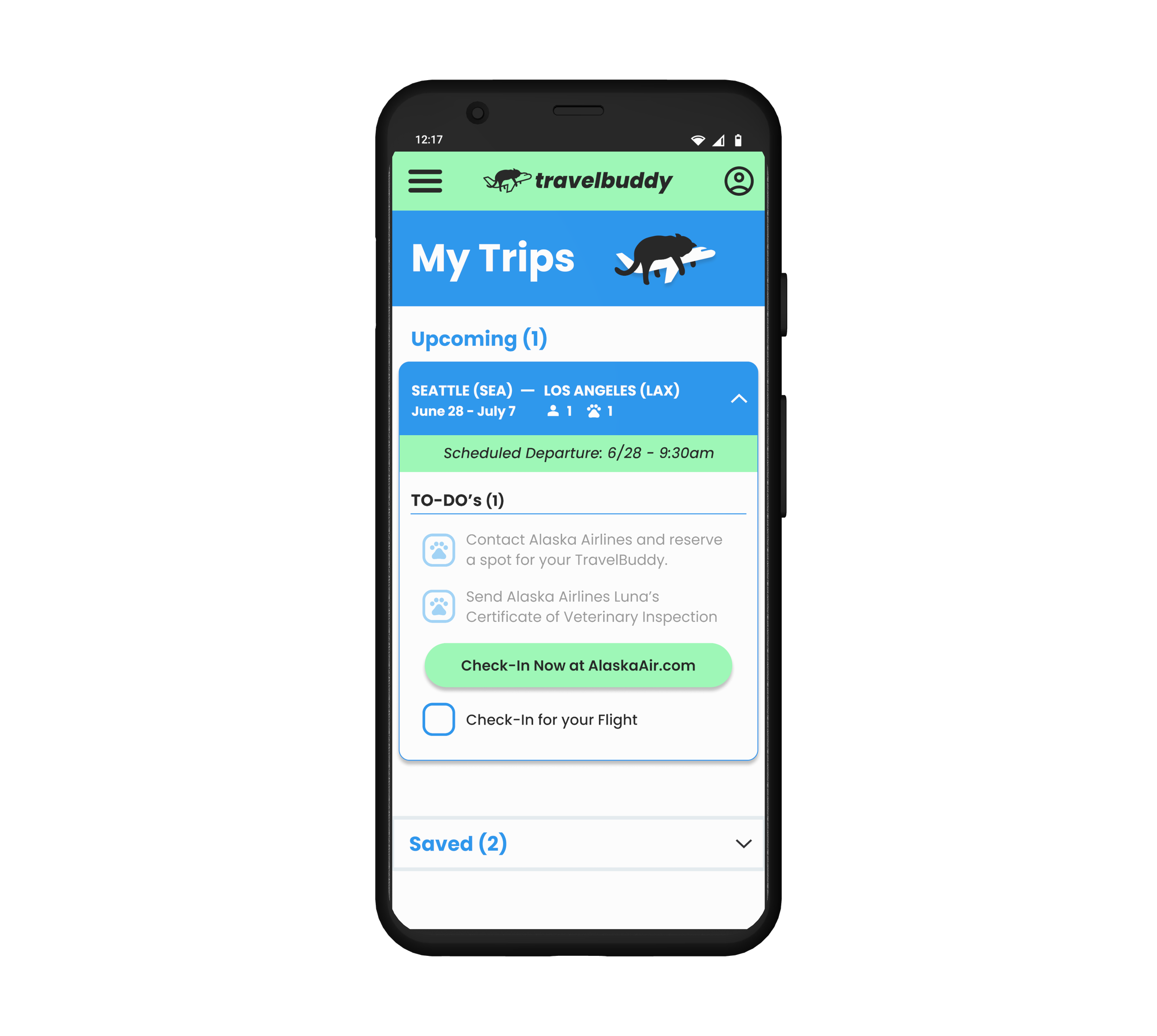 From the start, I knew that the branding of TravelBuddy.com needed to inspire confidence in its users. We don’t trust just anyone with our pets, so having the site feel safe, comfortable, and inviting were really important design goals. I first developed the logo and workmark for the website. Combining the elements of travel, pets, confidence, and calm into one logo was tricky; it needed to strike a balance of friendly, serious, and trustworthy. After working through dozens of thumbnails and sketches, I was eventually inspired by a friend’s cat lazily lounging on the edge of a couch. The image of a much loved pet sleeping comfortably on a plane immediately made me feel trust in the brand. Users need to feel welcome to the website and have full confidence that TravelBuddy knows what it’s doing when it comes to their pet. Knowing that blue can instill a sense of trust in users, it became the main color of the brand. The other important ideas I wanted to convey through the design were calm and friendly. A light jewel tone green was my next choice. It worked well with the blue, and plays on a land/sea theme to also help subtly convey the sense of travel.Create